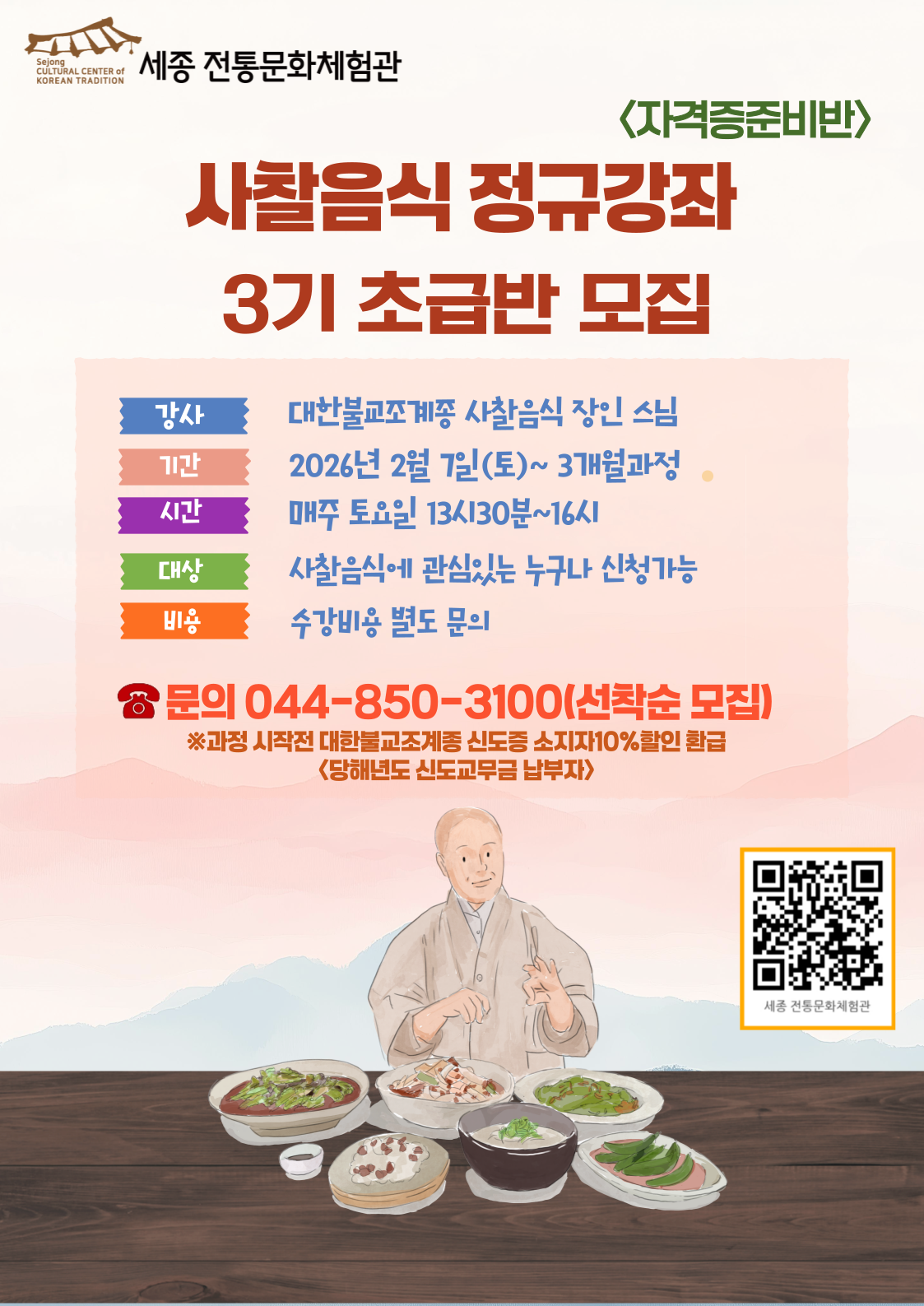 사찰음식 정규강좌 3기 초급반 수강생 모집