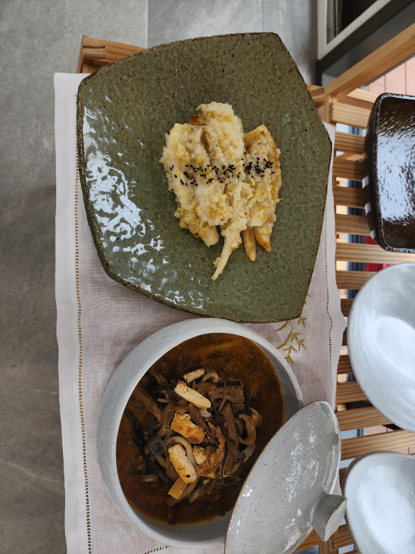 스님의 자세한 설명으로 채개장과 더덕 잣구이를 만들었어요.